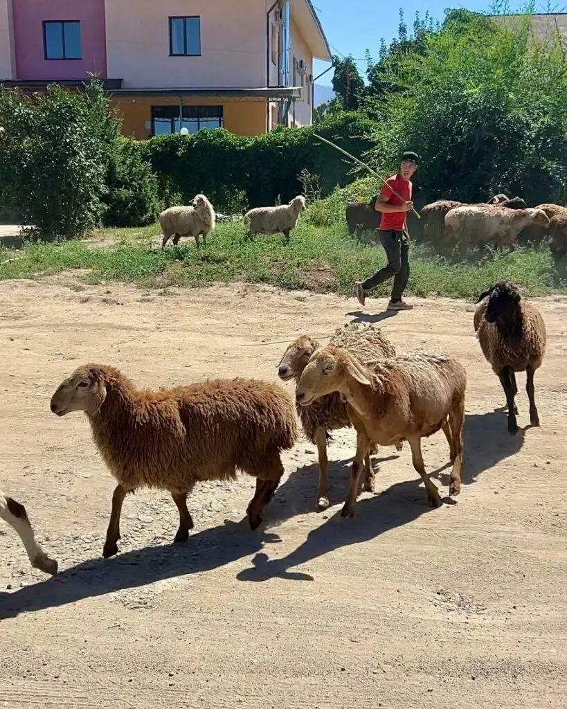 Our final stop was Karakol, a fascinating mix of modern cafés and traditional life. In one moment, you can be sipping coffee in a trendy café, and the next, the café is surrounded by goats being herded with men on horseback.