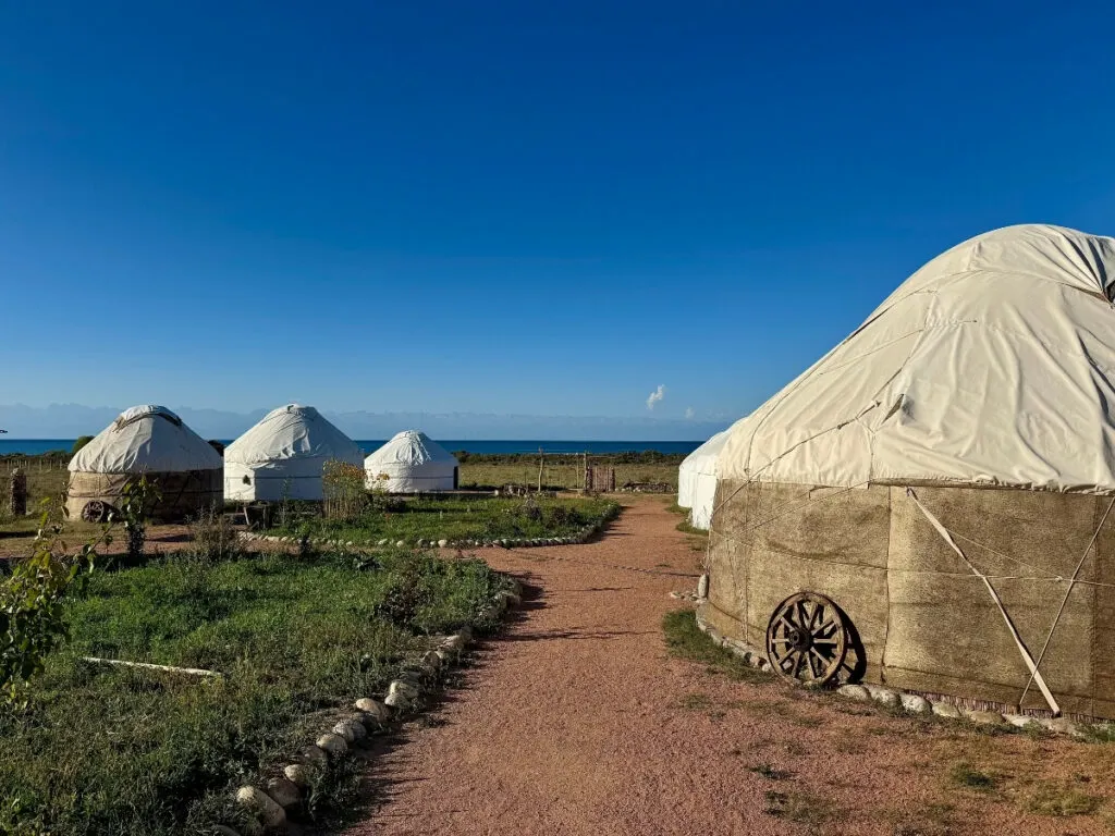 Kordon Guesthouse has yurts in its grounds, and staying in one was a highlight for us. It didn’t feel touristy at all. The yurt was decorated with traditional textiles and details, and the atmosphere was rural and authentic.