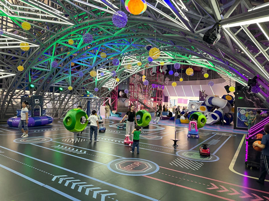 Skypark at Tashkent City Mall is one of the most incredible indoor play areas we have ever visited. It features a space theme that instantly captures kids’ attention, with slides that drop three stories, giant bungee swings, zip lines, and numerous soft play and climbing areas spread across multiple levels.